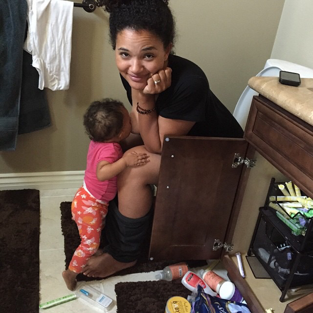 When I had my daughter it was hard enough. I was a new mom. Every squawk she made made me nervous. And she wanted to be held all the time. So you know, I had a bathroom buddy. Like you do. And when she was a toddler I just put toys in there and accepted that ‘me time’ was really ‘we time’.