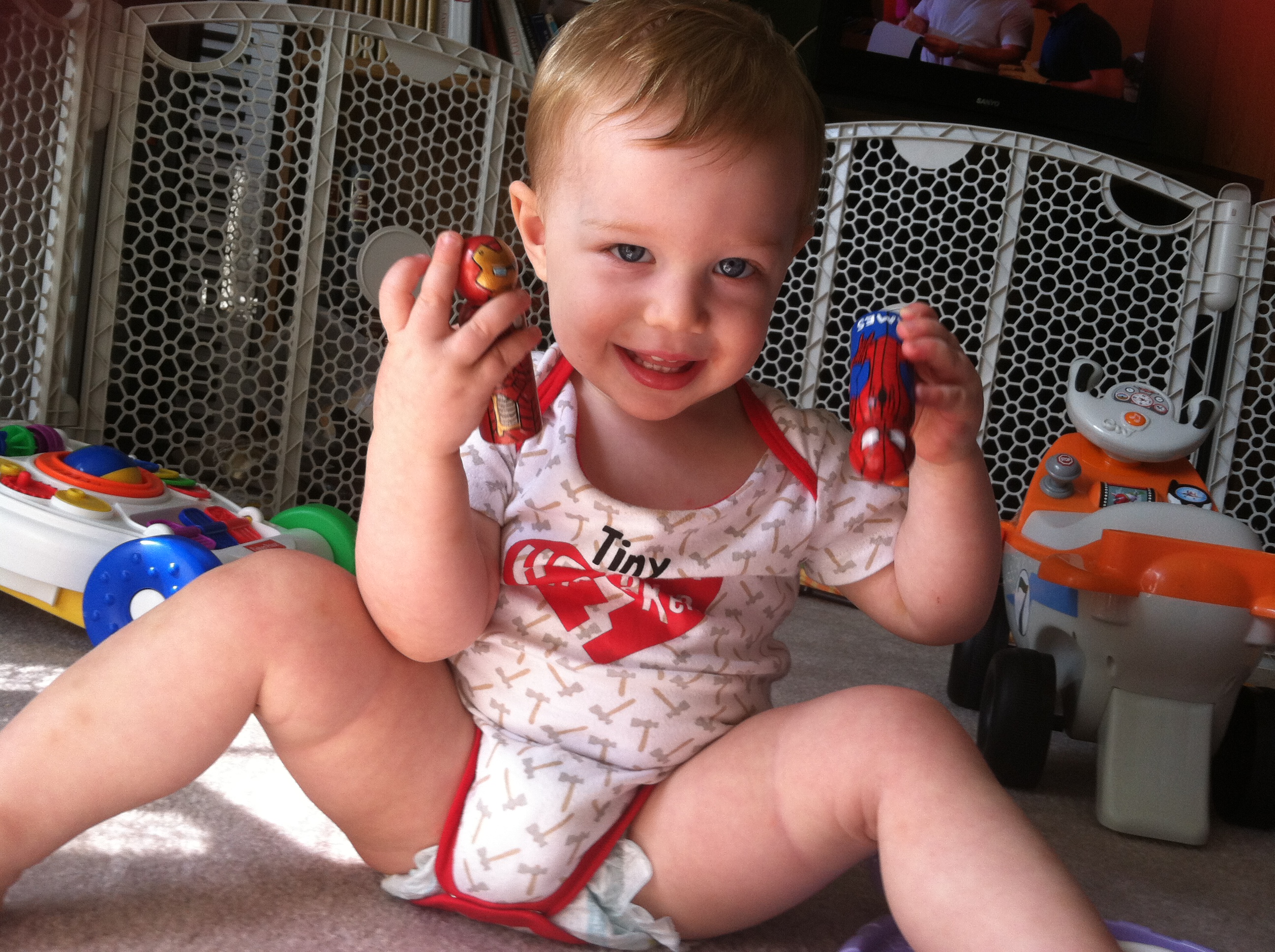 He could get out of that. Fine. Fine. So baby jail. (This is what my daughter calls the play yard).